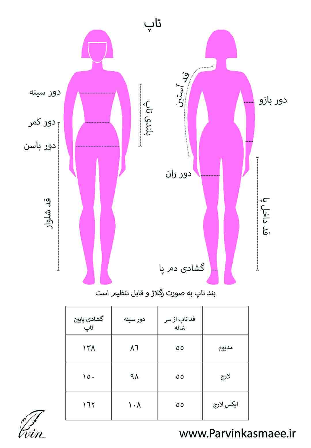 سایزبندی تاپ بلند